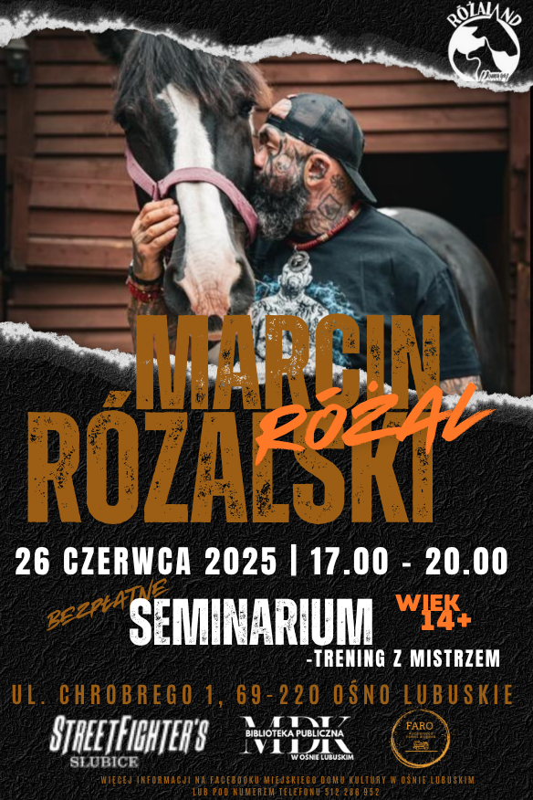 Wspólnie z Klubem StreetFighter's, z którym współpracujemy od zeszłego roku, organizujemy seminarium z Marcinem "Różalem" Różalskim– prawdziwą legendą sportów walki, mistrzem w swojej dziedzinie, a przy tym człowiekiem o ogromnym sercu, zwłaszcza dla zwierząt.